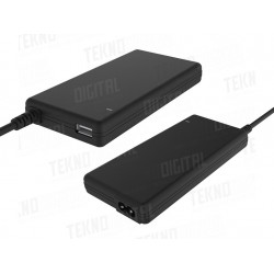 Gli Alimentatori Universali per Notebook by iTek hanno in dotazione ben 12 connettori diversi per offrire la più ampia compatibilità possibile con i notebook, ultrabooke tablet in commercio. Utilizzabili come ricambio oppure come caricatori secondari a casa, in ufficio oppure in viaggio. Sono dotati di protezione per sovraccarico, temperatura e corto circuito. Questo modello da 90W di potenza, è provvisto di una comoda presa USB da 5V 1A, oltre a dimensioni davvero contenute (solo 17 mm di spessore) per la massima portabilità e materiale gommoso softtouch.
