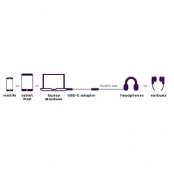 Collega gli auricolari o le cuffie con una spina jack da 3,5 mm a un iPad o smartphone con un'uscita USB-C.