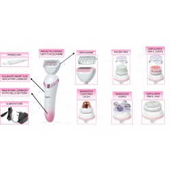 I diversi accessori ti danno la possibilità di esfoliare, depilare, massaggiare corpo e viso e in più l’accessorio per pulizia