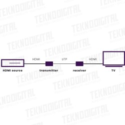 Il MegaView 65 consiste di un trasmettitore HDMI e un ricevitore HDMI. Ciò ti consente di estendere il segnale di un decoder fino a 40 metri su 1 cavo CAT 5e/6. Il decoder si collega al trasmettitore MegaView con un cavo HDMI, e il ricevitore MegaView si collega al (2°) televisore con un cavo HDMI. l trasmettitore e il ricevitore MegvaView sono collegati tra di loro tramite un cavo UTP.
