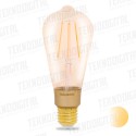 Questa lampadina a filamento LED WiFi intelligente può essere controllata a distanza tramite lo smartphone o il tablet. Per iniziare hai solo bisogno di questa lampadina, dell'app Smart me e di una rete WiFi stabile. Questa lampadina è perfetta per interni moderni con stile industriale. Includi diverse lampadine a filamento Smart me in uno scenario e crea l'atmosfera giusta per ogni momento. È anche possibile far accendere questa lampadina automaticamente se la colleghi nell'app Smart me, ad esempio, a un sensore o una telecamera Smart me. Nell’app puoi anche attenuare la lampadina o indicare se una lampadina deve accendersi o spegnersi in un momento specifico. È plug & play!