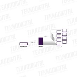 Con lo Split 418 UHD è possibile dividere il segnale HDMI dal decoder, o da un'altra sorgente HDMI, a 8 televisori. È ideale quando si desidera mostrare la stessa presentazione o film su 8 schermi contemporaneamente. Il commutatore supporta 4k2k e 3D, ed è quindi adatto per collegare al televisore/ai televisori Ultra HD.